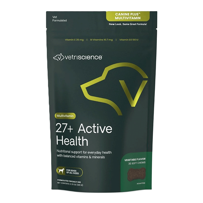 Το 27+ Active Health all dogs προμηθεύει στον οργανισμό τα πρόσθετα διατροφικά συστατικά, τις βιταμίνες και τα αντιοξειδωτικά που δεν βρίσκονται συχνά στις συνήθεις εμπορικές ζωοτροφές. Είναι σχεδιασμένο με ισορροπία αμινοξέων, Ω απαραίτητα λιπαρά οξέα από ιχθυέλαια και σύμπλεγμα βιταμινών Β. Αυτό το συμπλήρωμα σε μορφή λιχουδιάς βοηθά στη διατήρηση της υγείας και ευζωίας του ζώου ανεξάρτητα από το μέγεθος, την ηλικία ή τη φυλή.