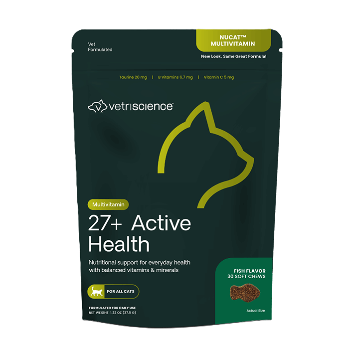 Το 27+ Active Health Cats Multivitamin προμηθεύει στον οργανισμό τα πρόσθετα διατροφικά συστατικά, τις βιταμίνες και τα αντιοξειδωτικά που δεν βρίσκονται συχνά στις συνήθεις εμπορικές ζωοτροφές. Είναι σχεδιασμένο με ισορροπία αμινοξέων, Ω απαραίτητα λιπαρά οξέα από ιχθυέλαια και σύμπλεγμα βιταμινών Β. Αυτό το συμπλήρωμα σε μορφή λιχουδιάς βοηθά στη διατήρηση της υγείας και ευζωίας του ζώου ανεξάρτητα από το μέγεθος, την ηλικία ή τη φυλή.